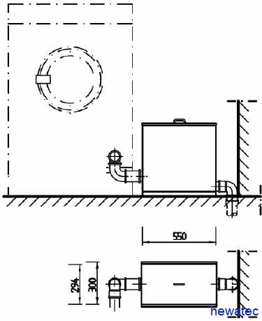 Zufluss Mitte 148 mm vom Boden